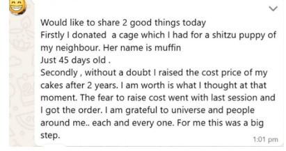 She was a housewife who once doubted her worth. But in just one day, her energy shifted – and miracles followed. First, she gifted a cozy puppy cage to her neighbour’s Shih Tzu, a pure act of kindness that raised her vibration. Then, after two years of hesitation, she boldly increased the prices of her cakes. The result? An instant order landed the same day!